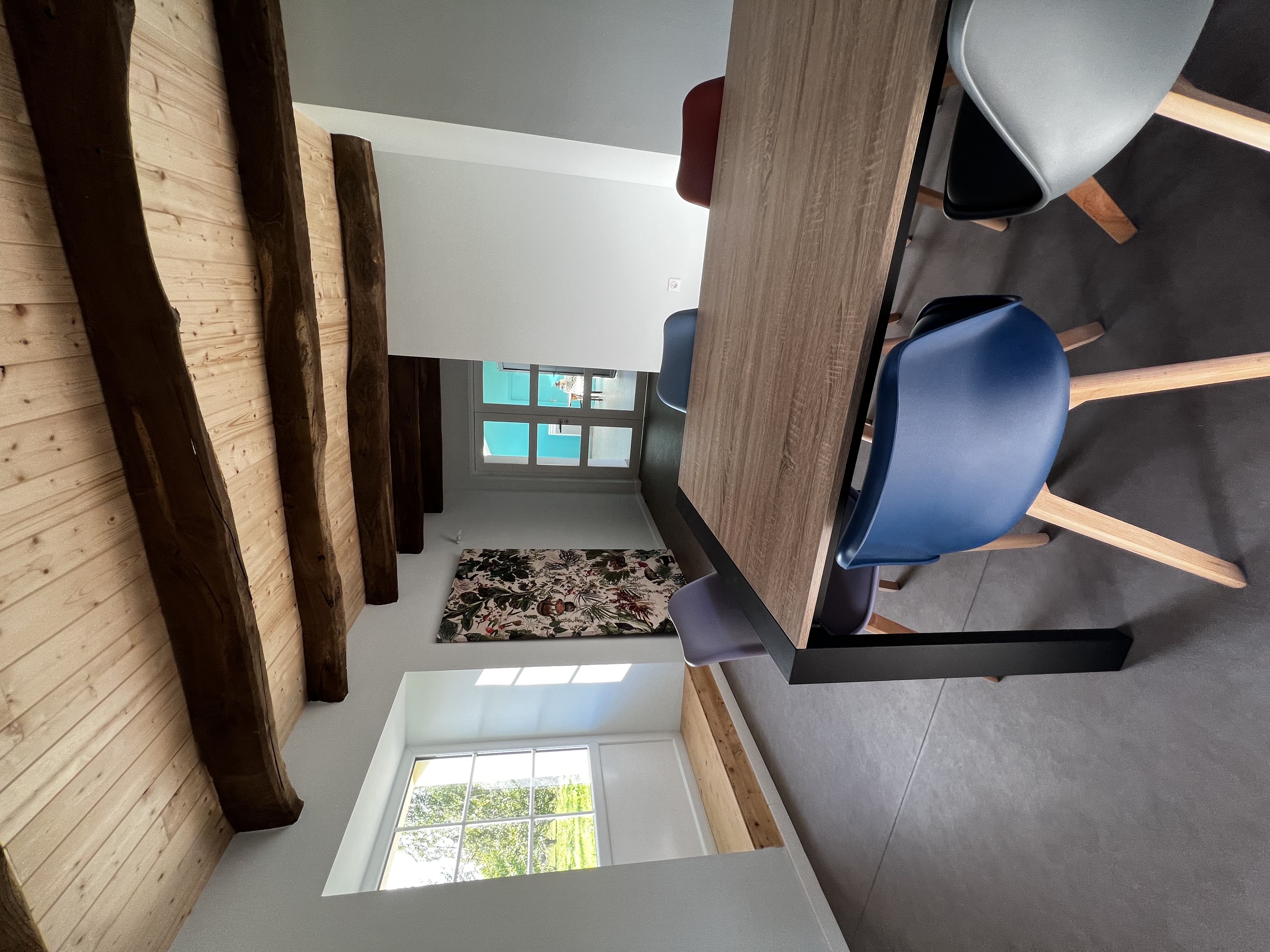 Vous découvrirez la Maison d'Eusèbe au cœur d'une campagne située au calme sans vis-à-vis. Cet ancien corps de ferme, restauré avec soin, est orienté plein sud et ouvre sur une cour aménagée avec une vue dégagée sur la nature très verdoyante.